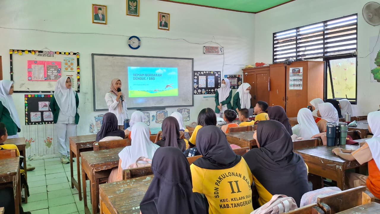 TANGERANG : (07/04/2026) Puskesmas Kelapa Dua menggelar kegiatan penyuluhan kesehatan di dua sekolah, yakni SDN Pakulonan Barat 2 dan SMPN 2 Kelapa Dua pada tanggal 7 dan 8 April 2026. Penyuluhan ini merupakan kolaborasi antara petugas promkes, penanggung jawab program DBD, Ausekrem dan Kesehatan Jiwa.